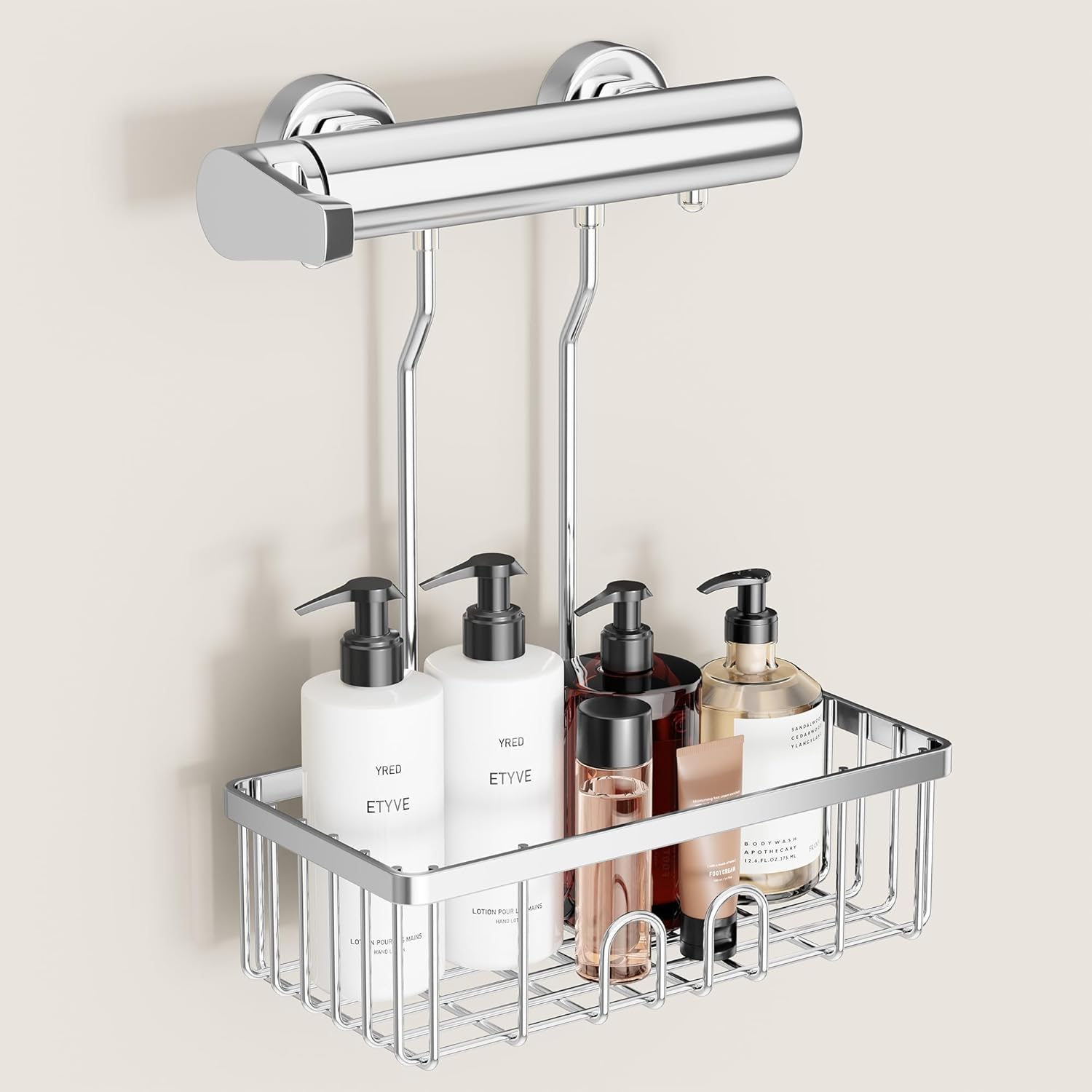 - ✔KRATZFESTES DESIGN – Die beiden Duschregalhaken sind mit PVC-Kunststoffhülsen überzogen, was dazu beiträgt, Kratzer an Ihrer Duscharmatur zu minimieren und außerdem die Stabilität des Hängeregals zu verbessern. Die Rückseite des Duschablage ist mit einer einzigartigen Kratzschutzsäule aus Kunststoff ausgestattet, um Ihre Fliesen vor Stößen und Kratzern zu schützen.
